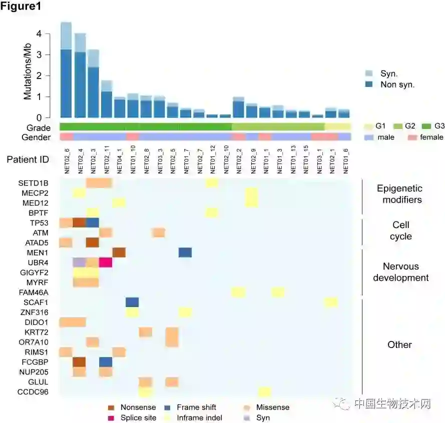 神经内分泌肿瘤(Neuroendocrine tumors, NET)是起源于肽能神经元和神经内分泌细胞的异质性肿瘤。NETs全身均能发生,而发生在肝脏的原发神经内分泌肿瘤十分罕见,约占NETs的0.3%。本研究首次构建了肝脏原发神经内分泌肿瘤的突变谱,使得对其肿瘤生物学的有了全方位认识,并提出了针对它的潜在的诊断标志物和药物靶标。