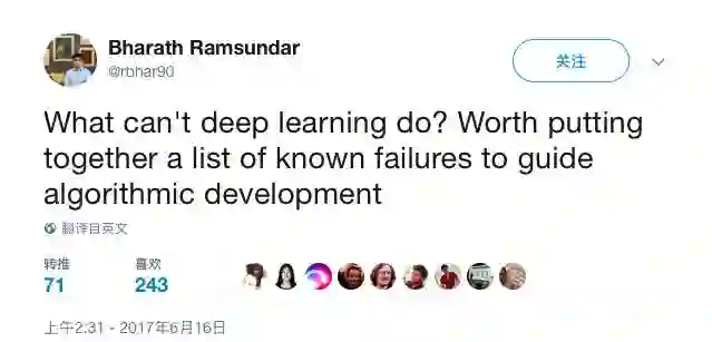 本文源自一次讨论深度学习缺陷的推文风暴,斯坦福大学的Bharath Ramsundar,在用深度学习进行药物研究的过程中发现,深度学习做不到事情其实有很多,比如无法鉴别对抗样本、处理不好高维数据、不能一边训练一边推断……他在Twitter上一一列出,并公开听取大家的见解。