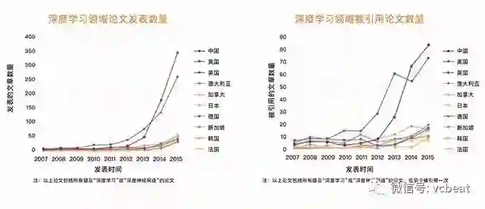 根据美国发布的《国家人工智能研究与发展策略规划》报告中显示,从2013年到2015年,SCI收录的人工智能方向论文,涉及“深度学习”的论文数量增长了约6倍。中国学者的论文发表数量从2014年开始超过美国,并大幅度领先于其他国家。