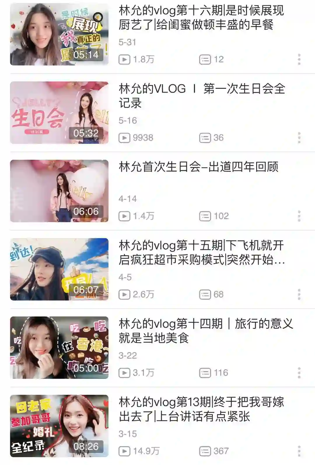 以林允为例,她的vlog从最初的美妆分享、工作拍摄,到现在增加了许多生活化的内容,比如回老家参加哥哥的婚礼、给闺蜜做顿早餐、过年回家走亲戚等。