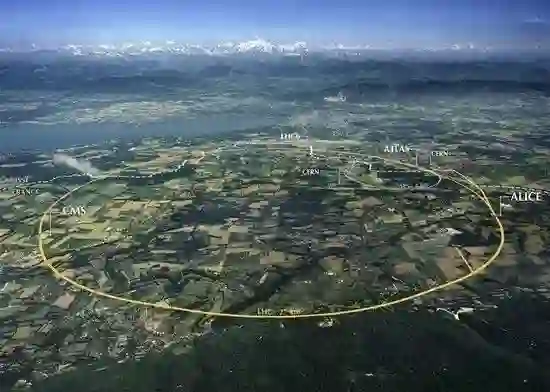 大型强子对撞机LHC鸟瞰及探测器位置示意图(图片来自网络)