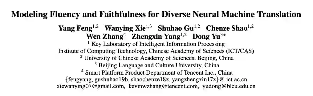 本文是对计算所冯洋组完成,被 AAAI2020 录用的论文《Modeling Fluency and Faithfulness for Diverse Neural Machine Translation》进行解读,相关工作已开源。
