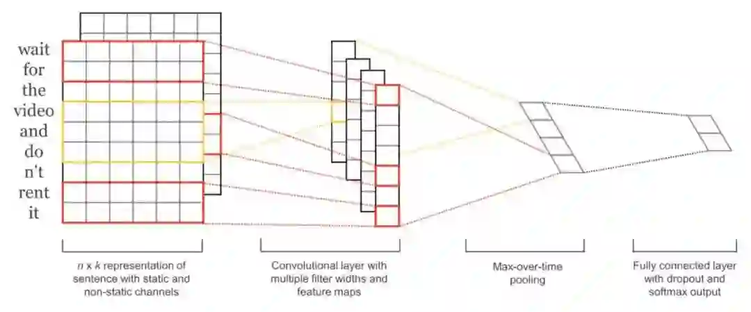 用于句子分类的卷积神经网络(https://arxiv.org/abs/1408.5882)训练速度很快。它作为一种入门级的深度学习架构,能够很好地解决分类问题。尽管CNN声名主要源自它在图像处理方面的出色能力,但在文本相关任务上,它所提供的结果也相当优异。且相比多数复杂的NLP方法(如LSTM、Encoder/Decoder架构等),CNN训练速度也更快。它能够保留单词的顺序,很好地学习单词的序列特征以及其他有用信息。相对于先前的模型,它可以区分出“Alex eats plants”与“Plants eat Alex”之间差异。