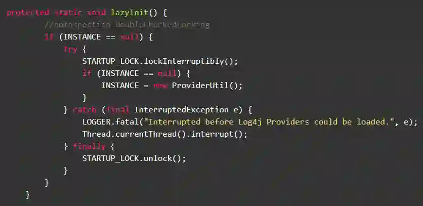 这里比较有意思的是hasProviders和getProviders都会通过线程安全的方式去懒加载ProviderUtil这个对象。跟进lazyInit方法: