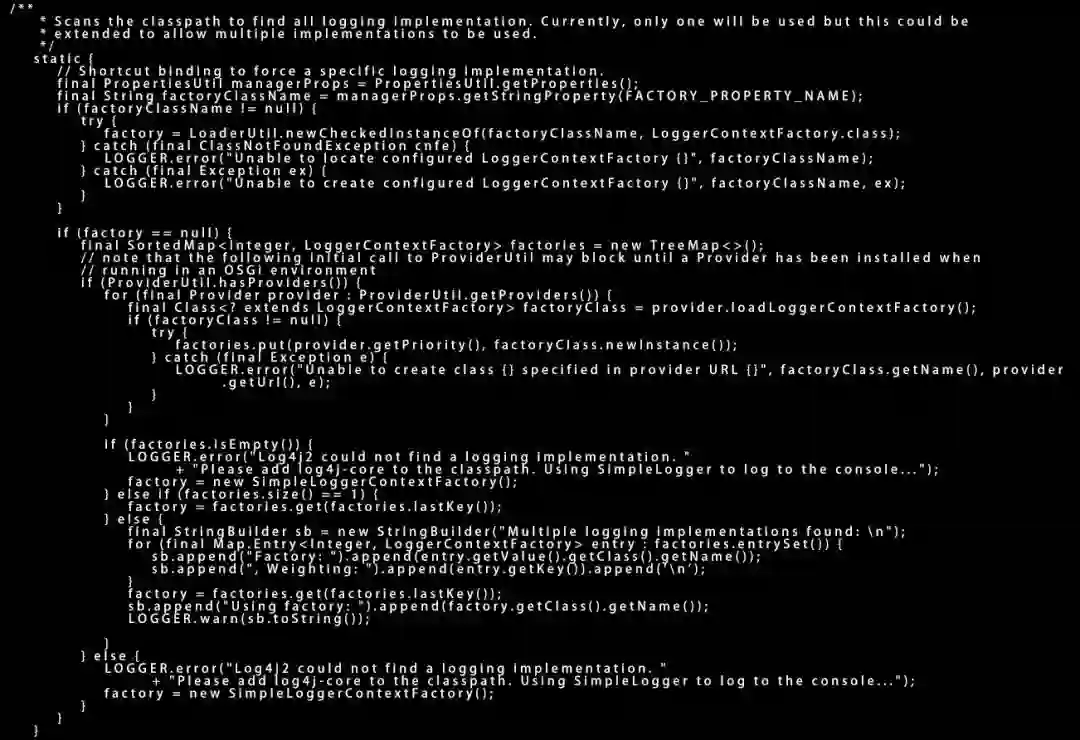 这里的懒加载其实就是懒加载Provider对象。在创建新的providerUtil实例的过程中就会直接实例化provider对象,其过程是先通过getClassLoaders方法获取provider的类加载器,然后通过loadProviders(classLoader);加载类。在providerUtil实例化的最后,会统一查找”META-INF/log4j-provider.properties”文件中对应的provider的url,会考虑从远程加载provider。而loadProviders方法就是在ProviderUtil的PROVIDERS列表中添加对一个的provider。可以看到默认的provider是org.apache.logging.log4j.core.impl.Log4jContextFactory