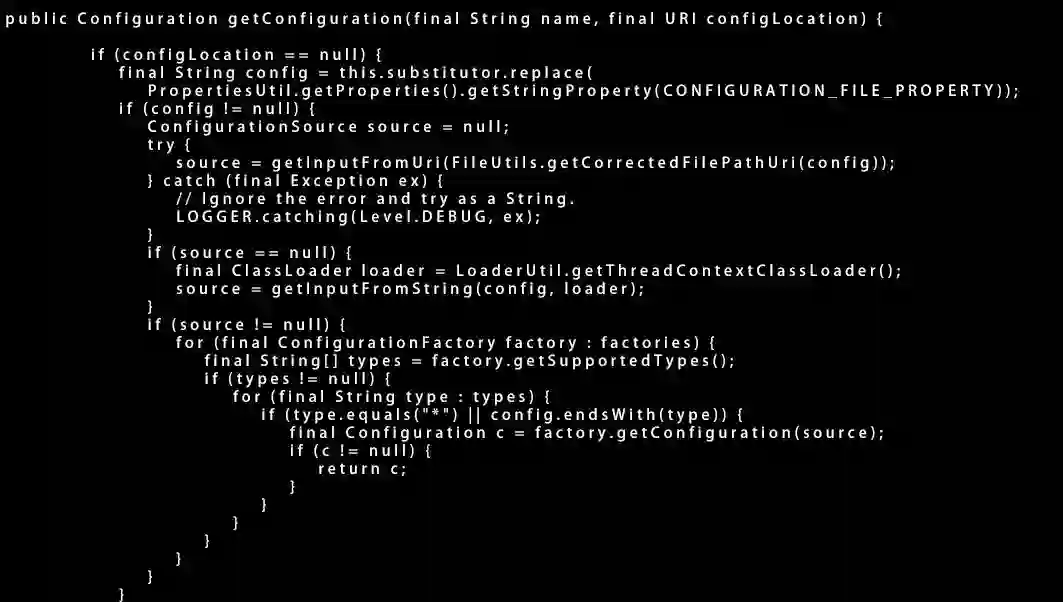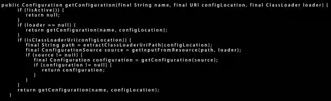 回到reconfigure这个方法,我们看到获取ConfigurationFactory实例之后会去调用getConfiguration方法: