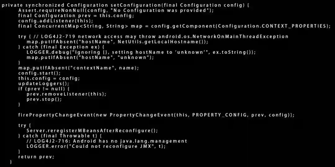 回到reconfigure,之后的步骤就是setConfiguration,入参就是刚才获取的config