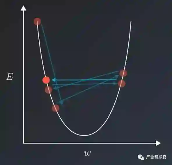 如果让人来走,可能就不一样了,你可能会先随便选一个方向,然后沿着这个方向的梯度向下走;过一会儿再随机换一个方向向下走;最后你发现自己差不多也到了谷底了。