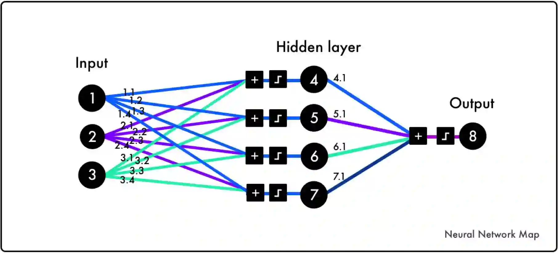 神经网络的运行方式也是如此,有输入和输出,然后通过调整齿轮来寻找输入和输出之前的关系。给定一个输入,通过调整齿轮来预测输出,然后将预测值和真实值进行对比。