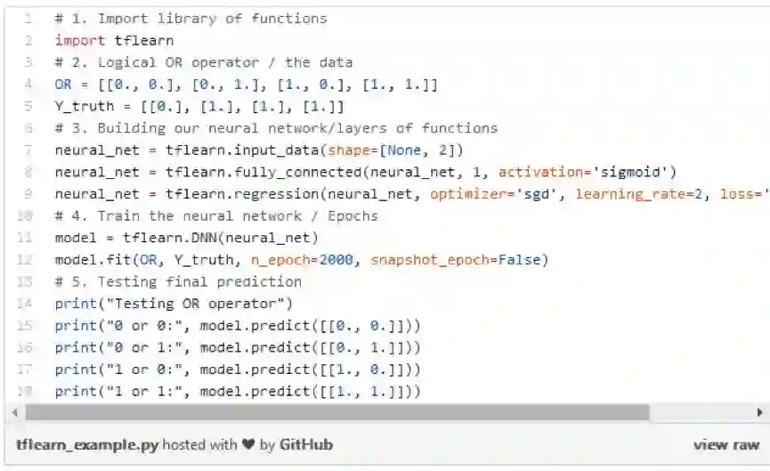 start-here.ipnyb 包含了一个简单的神经网络,可以了解TFlearn语法。它学习了“OR”逻辑,随后解释了所有组合。