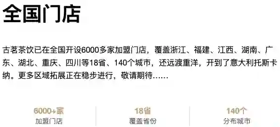 虽然加盟店数量达到6000多家,但古茗仅覆盖了18个省份的140多个城市,有些省份则是完全没有进驻。例如北方的核心城市北京和天津,一家古茗的店都没有。