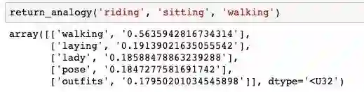 网络学到的类比并不完美(由于有些单词书面上出现的次数<10次,因此网络没有足够的信息可供学习),这种情况下我不得不仔细去看,但是发现仍有一些类比。