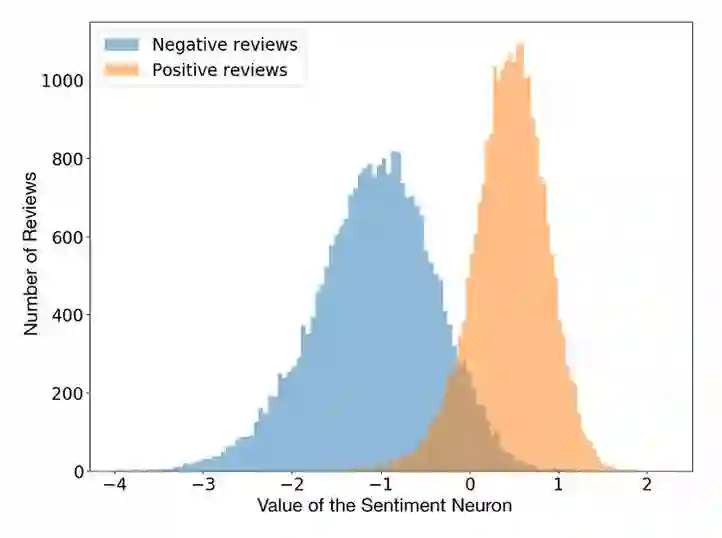 由于这些中间层存储有意义的输入数据编码,所以可以对多个任务使用相同的信息。例如,你可以使用一个语言模型(一个经过训练、用于预测下一个单词的循环神经网络),并解释某个特定神经元的激活以预测句子的情绪。