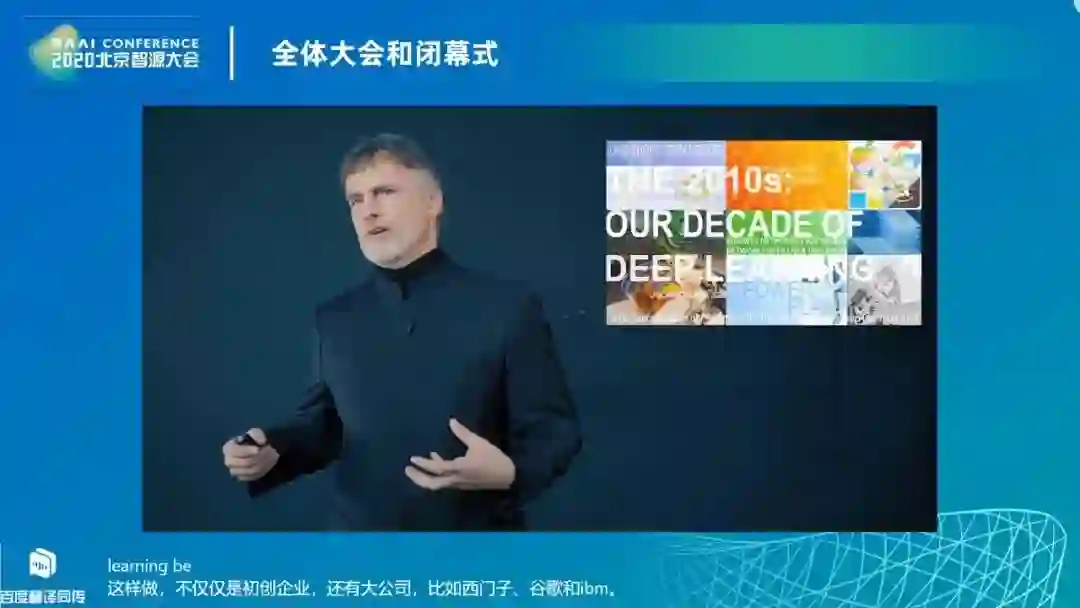 以化学为例,我们输入物质和条件,比如温度和催化,然后发生化学反应。经过大量化学反应的训练,人工智能可以变成一个人工化学家,可以提出新的化学物质的成分组成,实现你从未见过的规则。然后进行反向操作神经网络,确定我们需要哪种物质,什么条件,从而给定这个化学模型。我们在药物研究与开发中,也广泛应用了人工智能的这一功能。 通常一款药物的开发需要八年甚至更长,而应用人工智能通过快速的虚拟筛选加速了这一进程,可以让这个时间大大缩短。人工智能会事先将所有数据库中的分子进行筛选,选出其中的几种,之后再由科学家进行实验室试验。 Jürgen 提到:“从 1941 年开始,做一次运算的成本在三十年后可以做大约 100 万次这样的操作。”基于这一判断,他很有信心的讲出:“AI 未来会像智能手机一样普及。”人工智能的未来——好奇心 人工智能的未来是本次智源大会关注的焦点,站在新十年的开端,众多学者就未来十年人工智能的发展阐述了自己的想法。 对此,Jürgen 讲到“人工智能不要盲目地模仿人类,而是创造自己的目标,像小孩子一样好奇地探索世界。小孩子就是科学家,因为他们很少从父母那里学到什么,很多东西都是通过实验学习。” 在 Jürgen 眼里,人工智能更应该是个孩子,而不是机器,这也一定程度上体现了 Jürgen 在机器好奇心领域的研究成果。人工智能的未来不止停留在高效率、高精度的完成预设好的任务,而是有着更高的层次。 Jürgen 说:“人工智能的好奇心会让其拥有更强的探索的能力。人工智能会通过已知的数据和训练来探索未知,去触碰已知和未知的界面,就像小孩子做的那样。”在最后,Jürgen 提到了中国的科技发展。他说:“第二次工业革命后,世界上交流科学所用的语言是德语,之后是英语,以现在中国的发展速度,未来很可能中文会替代英语的位置。”这是对中国科技发展极高的评价。 在报告中,我们可以看到 Jürgen 对科技发展和人类社会的众多思考。他亲切的将人工智能称为“小孩子(baby)”,由此可见,其看待人工智能的角度与观点中还带有哲学的情思和情感的温度。 作者:杨启泽,清华大学微纳电子系本科生