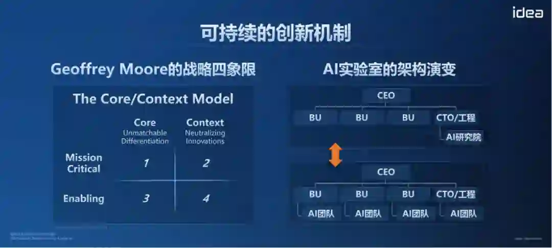 「孵化期」和「主流期」的成员都是企业创新团队的核心组成。「孵化期」的团队是否放在单独的 AI LAB、研究院等独立部门,不是关键。关键是这两类成员需要不同的人才标准和管理模式。