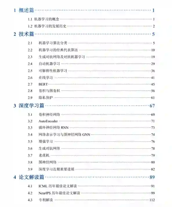 对机器学习发展历程、代表性专业技术、学者概况、发展趋势及应用现状等内容进行深入的梳理和概括