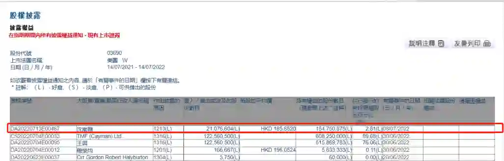 36氪获悉,港交所权益披露资料显示,7月8日,红杉中国减持约2107万股美团股票,价值约39亿港元,持股比例由3.19%下降到2.81%。