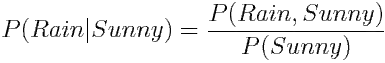 换句话说,我们用 Rain 且 Sunny 的概率除以 Sunny 的概率。