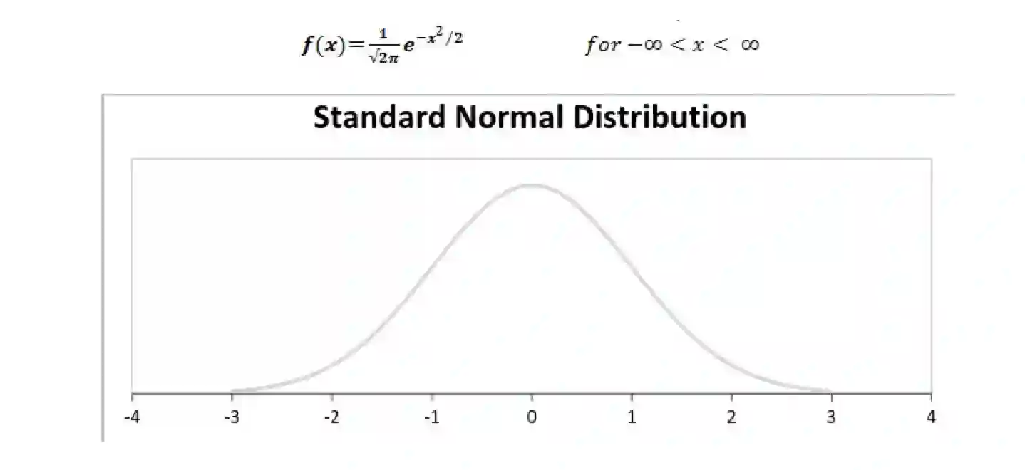 标准正态分布可以定义为均值为 0、方差为 1 的分布函数,以下展示了标准正态分布的概率密度函数和分布图: