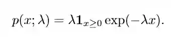 指数分布使用指示函数 (indicator function)1x≥0,以使当 x 取负值时的概率为零。