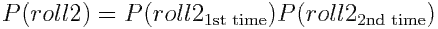 但是为什么这个公式可行?首先,我们将第一次投掷和第二次投掷的事件重命名为 A 和 B,以消除语义影响,然后将我们看到的两次投掷的的联合概率明确地重写为两次投掷的单独概率乘积: