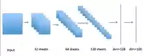 CIFAR-100 数据集由60000张100个类别的32x32彩色图像构成,每个类别有500张训练图像和100张测试图像。我们使用一个简单的 CNN 网络,其结构示意图如下图3,最后一层的维度是128,每个类别的标签都是一个独热编码。