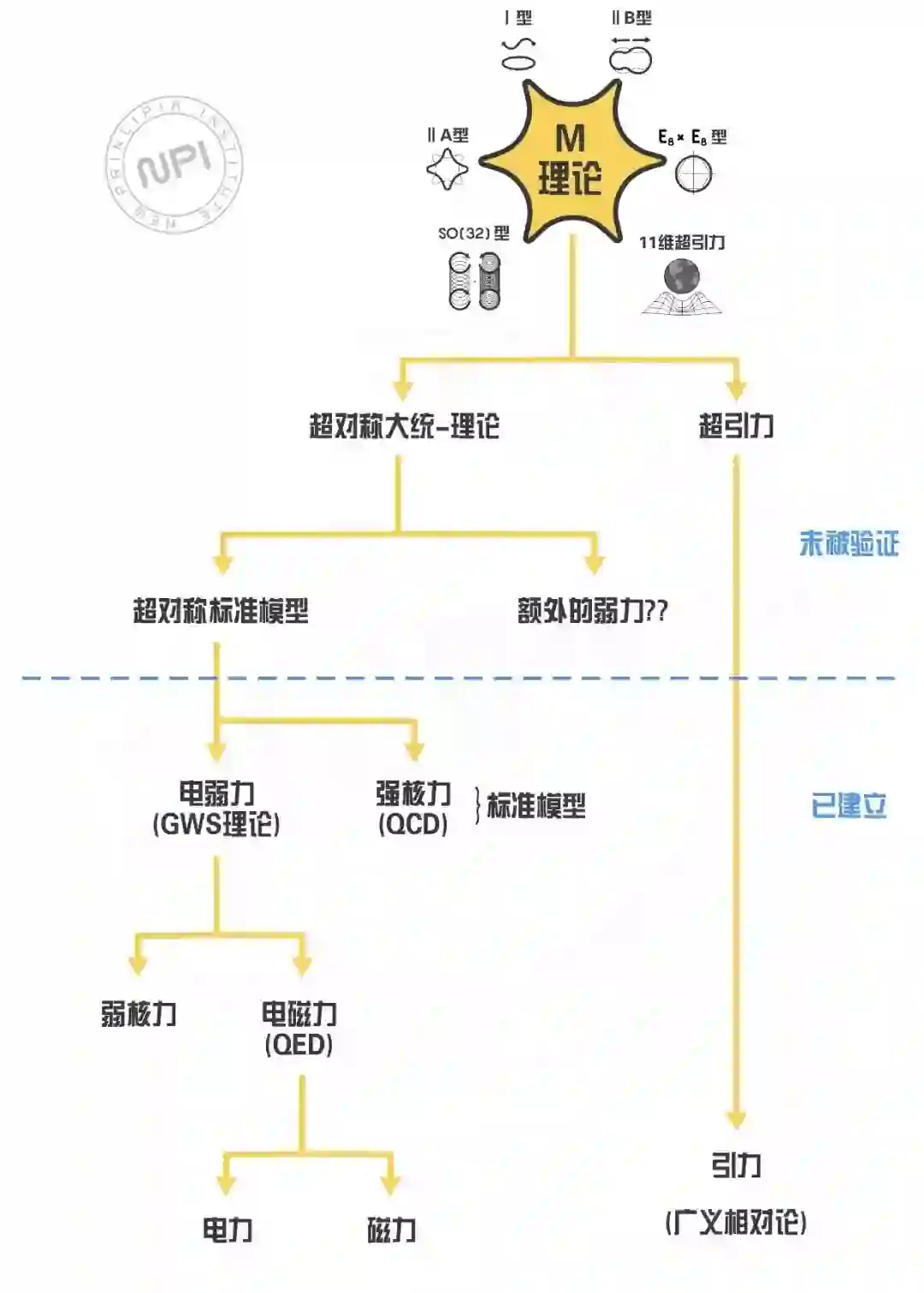 到了20世纪60年代,科学家证明了弱核力和电磁力实际上是电弱力的两个不同的方面。现在,研究人员希望电弱力和强核力可以统一成所谓的大统一力。之后,他们希望大统一力能与引力统一起来,形成万有理论。