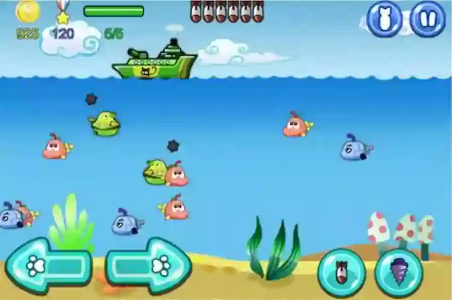 彼时iPhone 5还没有发布,智能手机的大潮即将到来。花了大半年时间,我们做了个简单的“炸潜艇”游戏:玩家可以左手控制移动,右手控制3个发射不同武器的按钮。
