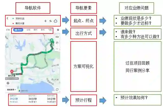 ,把可能的情况列出来。可这样做,能让业务部门决策起来非常轻松。这就像我们开导航,高德地图不会替我们选择起点终点,但是会很贴心的自动标出目前位置(现在)、保存去过的地点(目标)、选定起点终点后,提示有几条线路(怎么做),连路上堵不堵,预计多久到都有提示(预测目标达成率)。这样作为决策人看到信息非常清晰,自然容易做出策略判断了。
