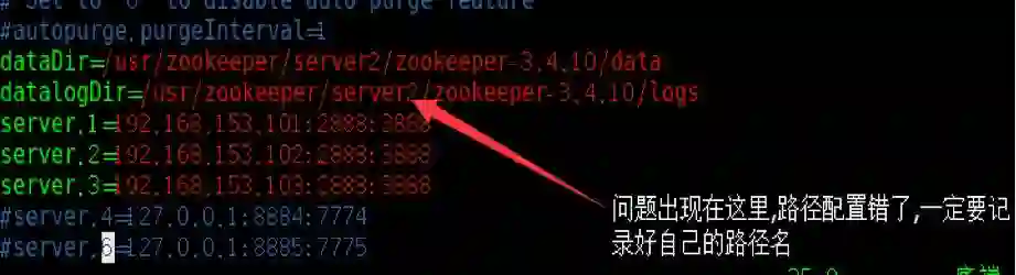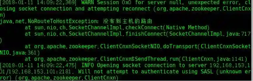 解析:一般来说这个问题就是我们的 zookeeper 出了问题, 这个是之前在搭 zookeeper 集群的时候, 二号机出了问题: