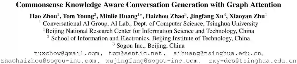 本文提出了一种结合知识图谱信息的encoder-decoder方法,引入静态/动态图注意力机制有效地改善了对话系统中response的质量。通过自动的和基于众包的形式进行性能对比,CCM模型都是优于基线系统的。