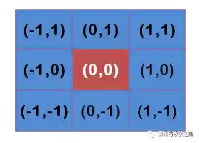 假定中心点的坐标是(0,0),那么距离它最近的8个点的坐标如下: