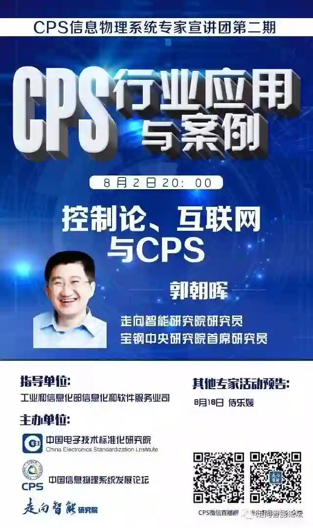 8月2日晚20点,CPS专家宣讲团继续开讲。走向智能研究院研究员郭朝晖博士为大家分享了"控制理论、CPS与智能制造”。CPS信息物理系统专家宣讲团,组织国内顶级CPS专家,从不同角度讲解CPS,为广大企业用户进行网络宣讲。
