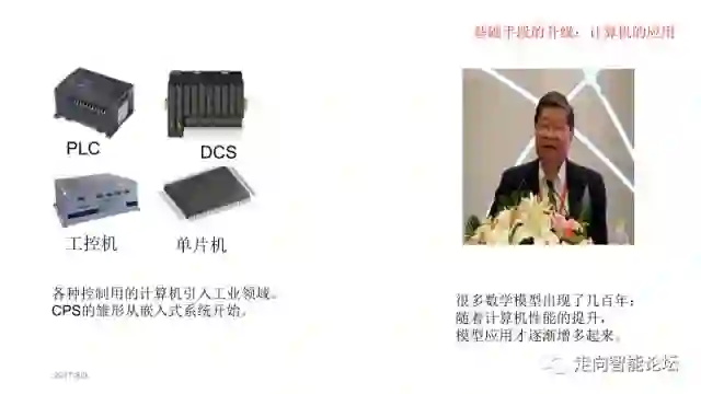 在我看来,“电子”不仅让信息的感知和处理变得容易,还打通了信息和物理两界、让感知决策和执行统一起来、不再受机械手段的约束;这导致了控制论的产生,自动化走上了历史的舞台。但是,控制论产生之初,受到信息控制手段的限制,应用范围有限。计算机则让信息的处理、尤其是建模和仿真变得非常容易、并适合描述各种过程和对象——我常说“数字化为什么重要? 因为它能够被计算机处理”,就是这个道理。这样就产生了CPS的萌芽。随着ICT技术的进一步发展,尤其是互联网的出现,让人们观察和控制的能力突破了时空的限制,赛博空间空前强大,从而带领我们进入了智能时代、CPS开始大放异彩。由此可见,基础技术条件的变化,才是最根本的(当然,信息技术进步背后或许是材料的进步)。这些技术的进步,为控制论、信息论的出现奠定了基础(这个基础其实是对理论的需求)。