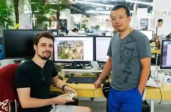 蔡震泓(右)有着 14 年的游戏行业从业经验,对游戏制作行业有着深入的了解。在育碧上海担任技术总监期间他参与了《孤岛惊魂》系列游戏的制作。