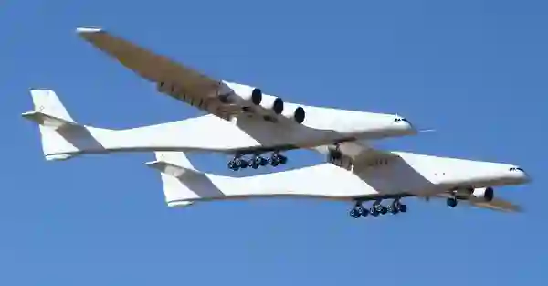 近日,在美国加利福尼亚州的莫哈韦沙漠,由平流层发射系统公司制造的全球最大的飞机——巨型双体飞机“罗克”(Roc)完成首次升空飞行。