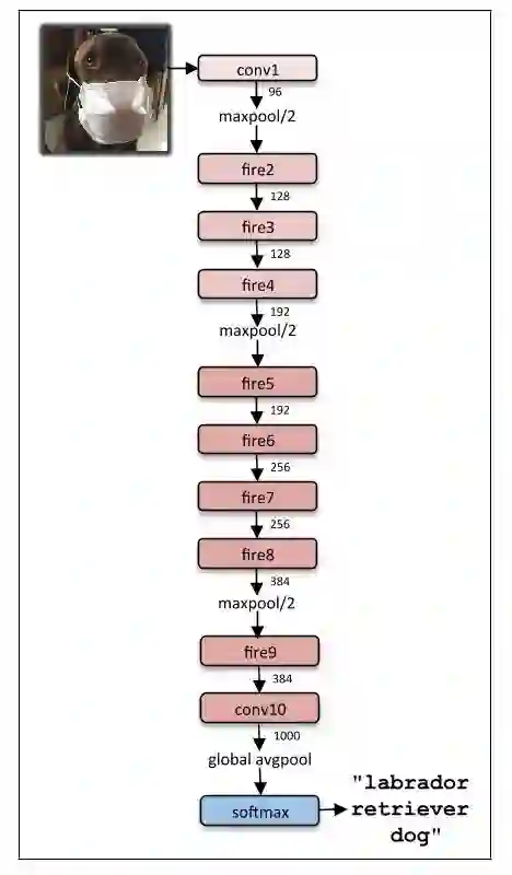 SqueeNet 架构是在移动平台这样的低宽带场景中极其强大的一种架构。这种架构只占用 4.9 MB 的空间,而 Inception 架构大小为 100MB。这种巨大的差距由一种名为 Fire Module 的特殊结构引起。下图是 Fire Module 的表示图: