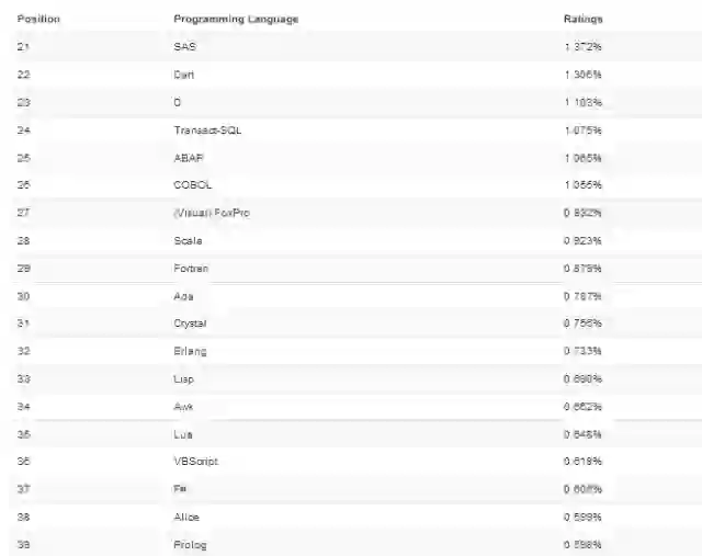 这个排行榜可以用来考查你的编程技能是否与时俱进,也可以在开发新系统时作为一个语言选择依据。
