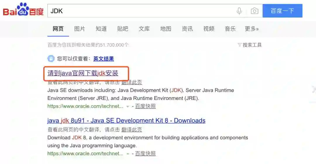 打开百度,输入“JDK”