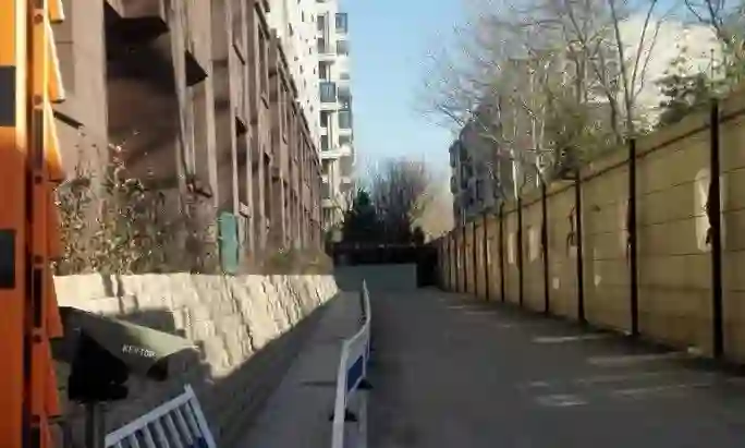 隔离后进出自住房区域的唯一通道,左侧的人行道紧挨楼房