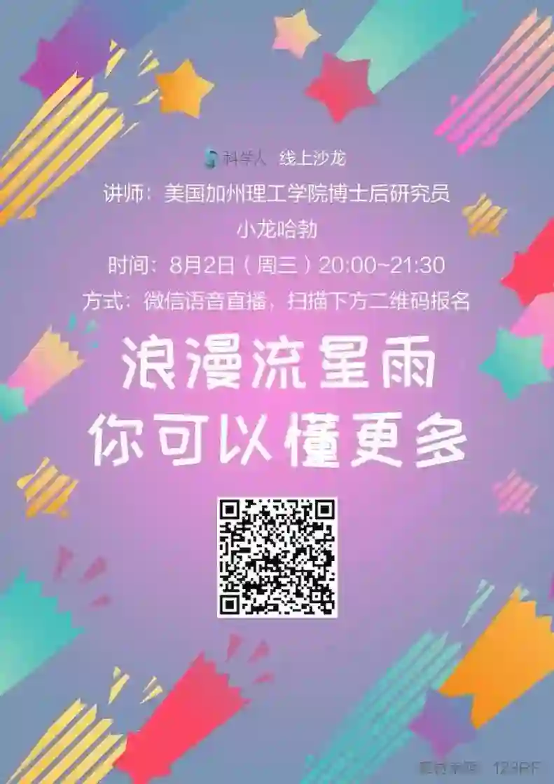 别急!你知道流星雨是什么吗?如何能看到最壮观的流星雨?要带点什么装备才能出发?先来听听本次讲座吧,带着满满知识再去!等待美景的时候聊聊流星雨的小故事,你们眼中的流星将不再仅仅是一道星光那么简单,小伙伴一定觉得你棒棒哒!