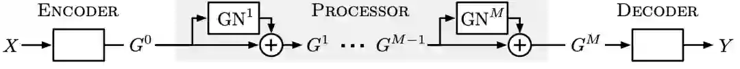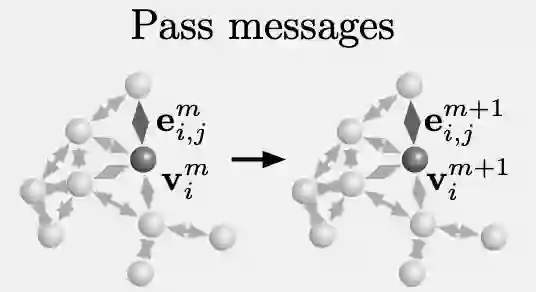 而在处理器中,图中各颗粒的关系会不断发生变化,图网络学习得到的传递信息将会在图上迭代M次。