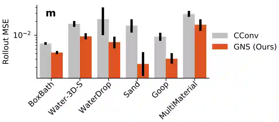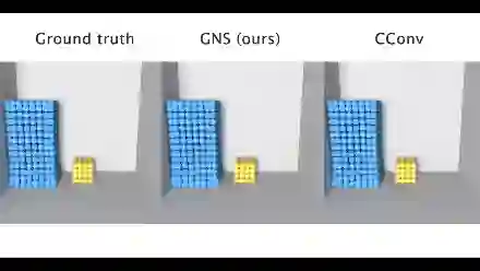 可以看见,GNS生成的方块和真值一样,在水中漂浮自如;相比之下,CConv生成的方块直接在水的冲击下变了形(被生活击垮)。