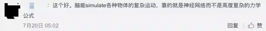 网友对这样的想法感到惊奇,毕竟,人脑对于流体或是物体撞击效果的模拟,并非通过大量力学计算得出,而是通过神经网络模拟的。