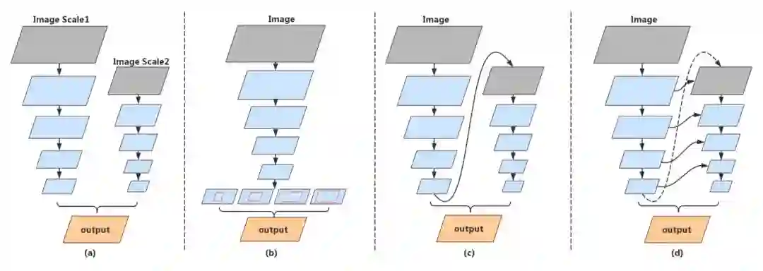 神经网络的卷积操作在各个层级抽取出大量特征,充分用好这些来之不易的特征向量是设计轻量级神经网格的圭臬,而不同的部位之间特征共享是一个重要的手段。DFANet 对主流分割网络做出了这样一个观察:网络中往往存在不同输入分辨率的进行特征提取的并行的“塔”(如图 1(a)所示);而这些“塔”之间可以共享特征。