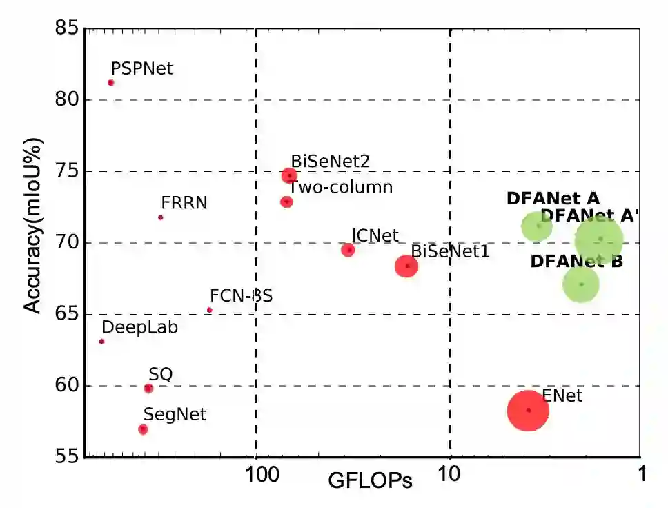 图3 : DFANet与其他方法性能对比