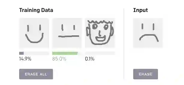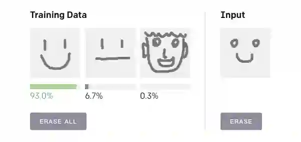 下面就是该算法的一个Demo,在Training Data中画三个训练图像,然后在Input区域画一个输入图像,算法会自动判断这个输入图像属于训练图像的哪一类,并用概率表示。