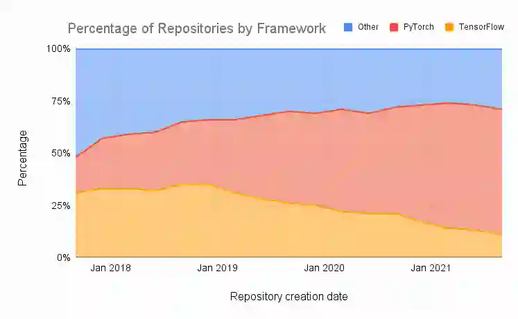 考虑到 PyTorch 实际上是一个研究型框架,作者预期在 HuggingFace 上观察到的趋势会蔓延至整个社区,结果不出所料。