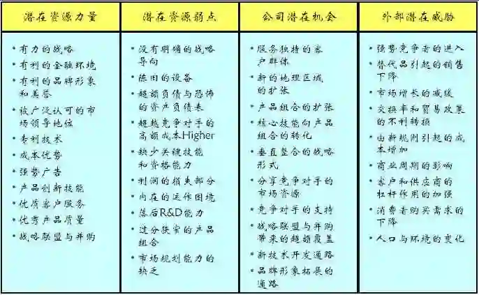 最简单的产品定位可以采用SWOT分析制定: