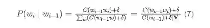 以 bigram 语言模型为例,使用加 平滑之后的条件概率为: